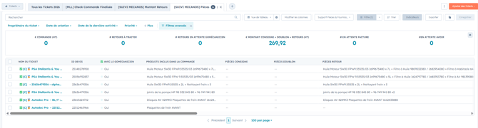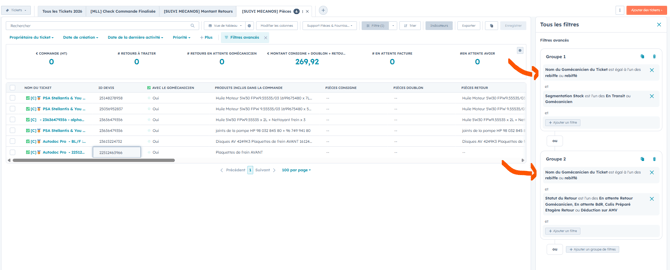- Si les colonnes "Pièces Consigne", "Pièces Doublon", "Pièces Retour" sont vides, les pièces à prendre en compte sont celles indiquées dans la colonne "Produits Inclus dans la Commande" (dans notre exemple, la dernière ligne)