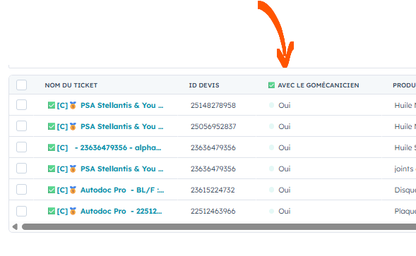 5/ La colonne "✅ avec le Gomécanicien" permet de confirmer qu'un point a été fait avec le Gomécanicien. Cette colonne n'est pas nécessaire, mais sur les premiers temps, il est préférable d'appeler le Gomécanicien pour valider avec lui la pertinence de la liste.